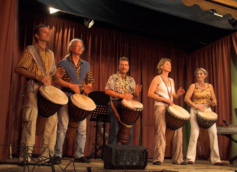 einladen möchte. Ihre musikalische Basis sind Trommeln und die Rhythmik