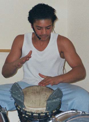Zusammenspiel der einzelnen Stimmen von Djembe und Basstrommeln auf und